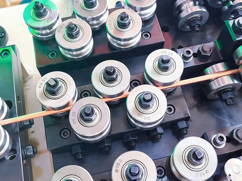 GRM Rolling Mill үйлдвэр нь тэгш өнцөгт соронзон утсыг нарийн хэлбэрт оруулах зориулалттай өндөр нарийвчлалтай цахилгаан соронзон утас цувих тээрэм санал болгодог. Төхөөрөмж нь шахмал эсвэл хүйтэн цувих процессыг ашигладаг бөгөөд утас нь олон өнхрөх дамжуулалтаар нарийн булангийн хэлбэртэй байх ба пааландсан, цаас эсвэл полиэстр материалаар тусгаарлах боломжтой. Уг цувих тээрэм нь ороомгийн нягтрал, тусгаарлагчийн чанарыг маш сайн хангахын тулд дээд зэргийн зузаан, өргөнийг хянах системтэй бөгөөд мотор, трансформатор, инвертер зэрэг өндөр хүчин чадалтай цахилгаан тоног төхөөрөмжийг үйлдвэрлэхэд өргөн хэрэглэгддэг.